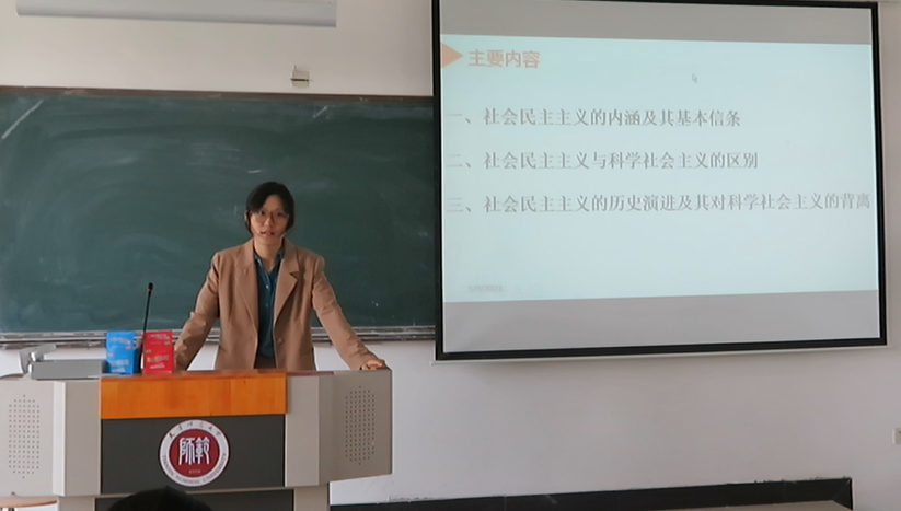 课堂伊始,郑荃文老师对本节课的基础性问题进行了生动阐释,帮助学生了解社会民主主义思潮的建立情况,随即指出中国特色社会主义是科学社会主义基本原则与中国具体国情和实际相结合的结晶,科学社会主义基本原则是中国特色社会主义的“根子”和“源头”。其次,从五个方面具体分析了社会民主主义同科学社会主义的不同之处,在指导思想、政党性质等方面强调科学社会主义的“科学”正是因为坚持了马克思主义科学理论指导和党的无产阶级先锋队性质。最后,将社会民主主义的发展历程划分为七个阶段,逐步阐述了社会民主主义背离科学社会主义的过程。郑老师在两种不同思潮的对比中引导学生自主思考,从多角度阐释科学社会主义的真谛,加深了学生对科学社会主义和中国特色社会主义的理解,引导学生树立正确的思想观点,自觉成为社会主义事业合格建设者和接班人。课后,同学们纷纷表示受益良多。