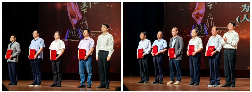 校党委副书记陈玳玮为魏继昆教授颁发2023-2024年荣休教师纪念品。校党委常委、副校长纪德奎为我院刘玉芝老师颁发“从教三十年”荣誉证书。