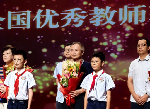 在礼敬大先生环节,马德普教授作为全国优秀教师称号获得者受到参会全体师生礼敬。