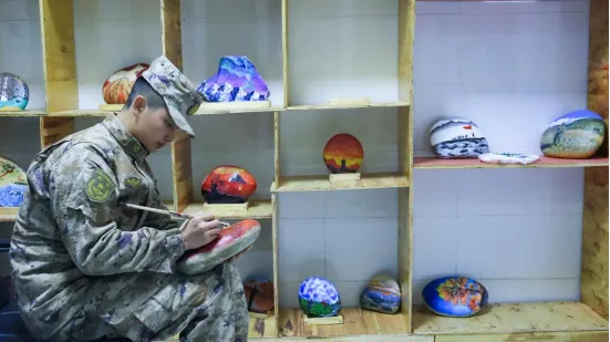 慰问信寄到官兵们的手中,战士们迫不及待地拆开信封,一字一句地品味着来自天津的牵挂。战士们被这份真情深深打动,一位战士动容地说:“看到这些信,感觉再苦再累都值得了。”为了回应这份温暖,他们精心用戍边石作画,将巡逻身影、驻地山河和对学生们的鼓励与祝福融入画作之中。部队在官微上分享了这次充满温情的互动,一张张战士们读信的照片、一幅幅饱含心意的戍边石画,引得无数网友点赞留言。