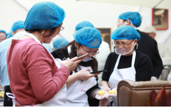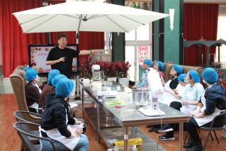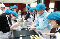 活动现场布置温馨,长桌上整齐摆放着烘焙工具和食材,奶油、水果、饼干的香甜气息弥漫全场。宜麦烘焙食品工作室不仅为活动特别制作了“我爱师大”“女神快乐”冰糕模具及含有政行学院LOGO的可食用的慕斯蛋糕创意签,更是安排了专业烘焙师现场教学,从打发鸡蛋、奶油,到主副料投放的标准,细致讲解“步步高”蛋糕、台式绿豆冰糕的制作技巧。女教工们化身“甜点大师”,有的专注配方的科学性,有的认真称量面胚,精心制作。欢声笑语中,一个个精致可爱的纸杯蛋糕、绿豆冰糕逐渐成型。老师们捧着自己的作品拍照留念,陶醉于自己的成果。
