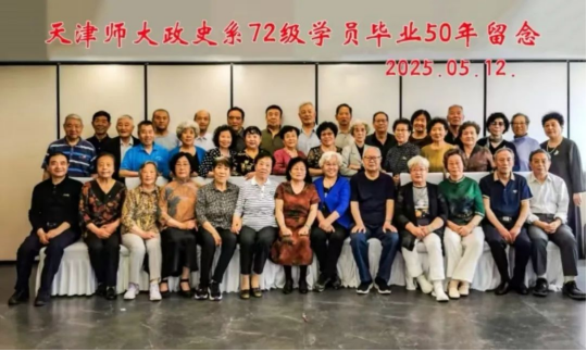 5月12日,原天津师范学院(今必赢76net线路官网)政史系1972级学员在毕业50周年之际,举行“相念50年 再叙同窗情”聚会。这些老同学心情格外激动、格外高兴,亲切地互致问候和祝福,有着说不完的话,有着道不完的情,沉浸在一片欢声笑语之中。