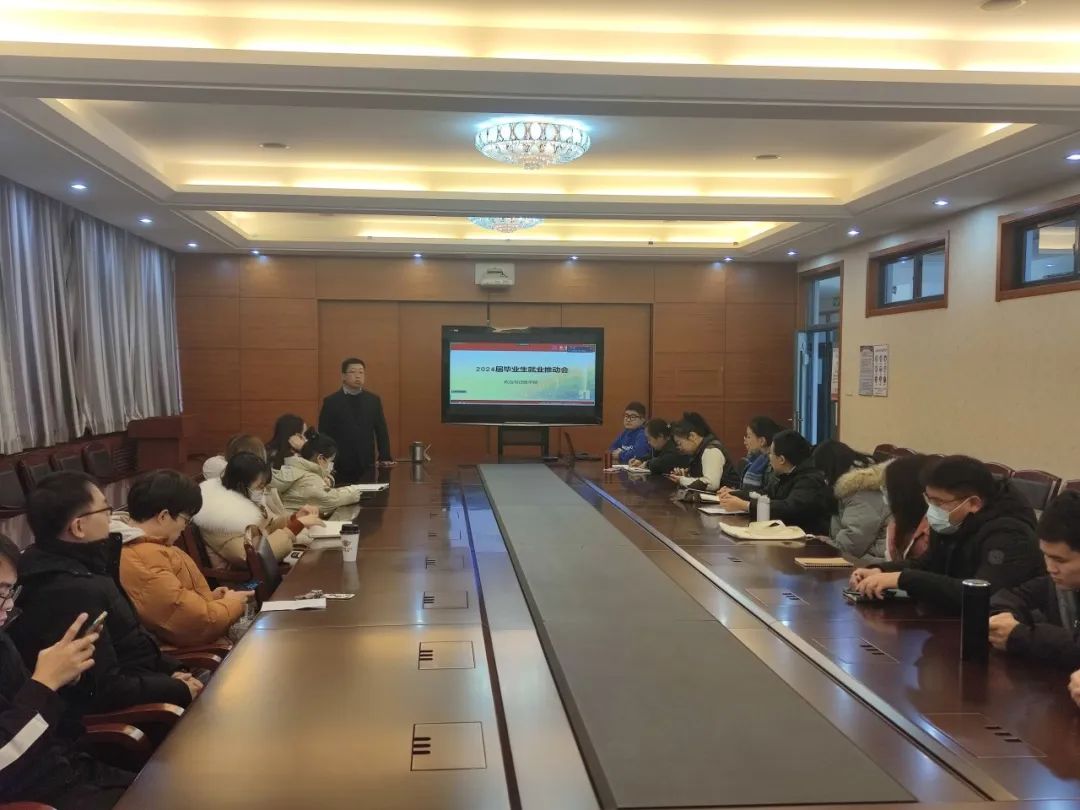 为扎实做好2024届研究生毕业生就业指导与服务工作,帮助学生了解就业形势,把握就业机会,做好就业与职业规划,提高毕业生就业竞争力,我院于2023年12月22日下午,在B402教室召开了2024届研究生毕业班就业推动会。学院党委副书记兼纪委书记王晓博、全体学工办老师和毕业班研究生同学参会。