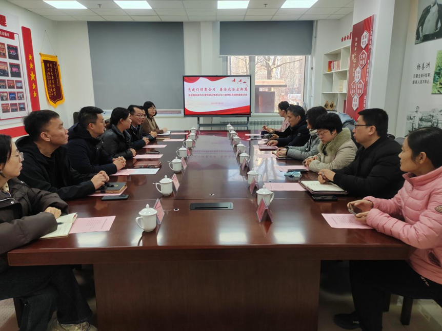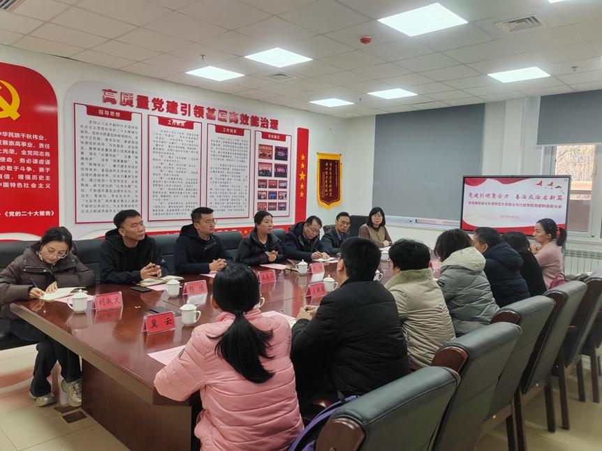 考察结束后,学院调研团队和西青区赤龙南街道领导班子开展了党建联建座谈会。座谈会上,街道党工委书记陈瑞、学院党委书记姜德红分别介绍了双方基本情况。随后,双方立足各自实际,就如何更好地发挥专业优势、充分挖掘利用资源、凝聚为民服务合力,共同探讨有效的新思路、新方法。双方就构建街道党工委与高校学院党委责任共担、组织共建、发展共促、服务共做、资源共享的一体化党建工作格局达成共识,并表示要进一步深化推动党建与业务有机结合,以高质量党建为基层治理注入“红色动能”。
