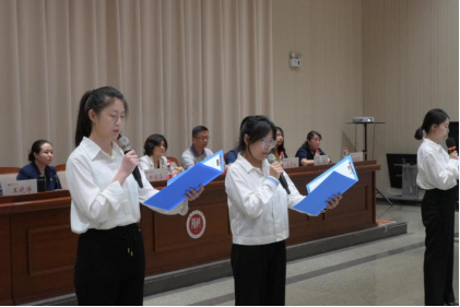 李紫媛、赵玉妹、郝思语和侯蕴雯四位同学深情朗诵了诗歌《我们走在大路上》,表达了他们在思想上入党的道路上不断前行的坚定决心。
