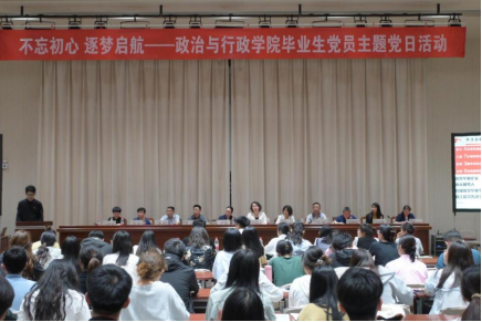 为进一步增强学生党员的政治意识、纪律意识和责任意识,引导毕业生坚定理想信念、勇担时代责任,必赢76net线路官网于5月24日举办了“不忘初心,逐梦启航”毕业生党员主题党日活动。校党委组织部长田鸿芬、学工部长李青、校友服务与管理中心主任杨琥以及学院全体党委委员出席活动,百余名毕业生党员参加活动。