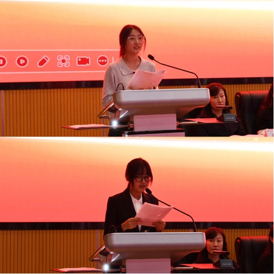 2022级政治学与行政学专业本科生刘若彤、2023级行政管理专业本科生孙菲、2023级国际政治专业硕士研究生李鹏飞、2022级社会工作专业本科生侯蕴雯作为优秀在校生代表分享了自己的成长经历,以诚挚有力的话语展现出政行学子多元创优的发展路径和奋发向上的精神风貌。